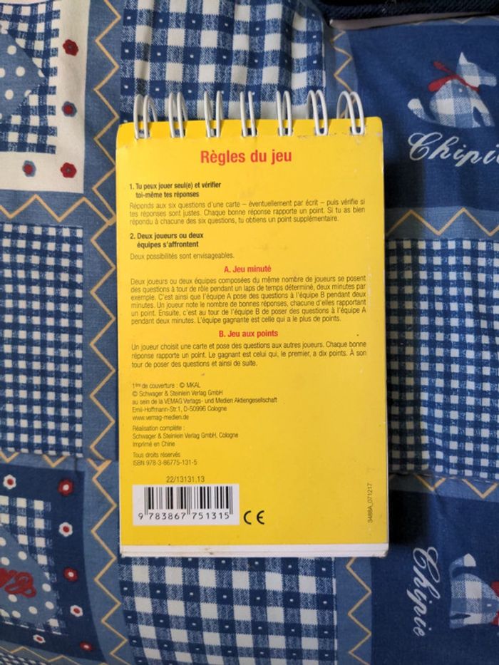384 questions. Format 9 par 15 cm. Légèrement taché sur les côté mais les cartes sont en excellent état