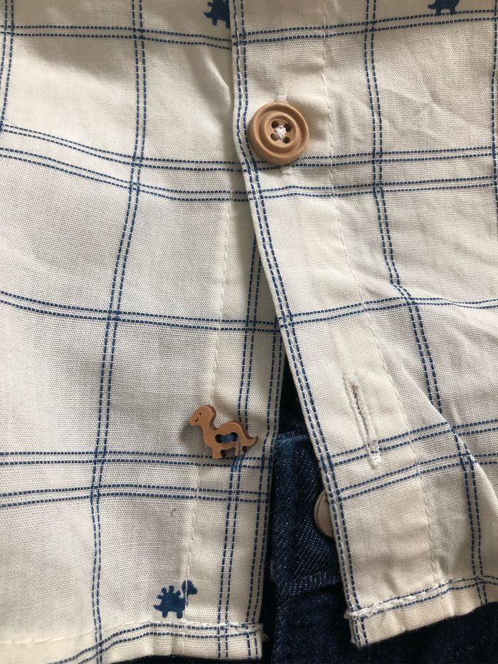 Porté une seule fois. Thème dino avec jolis boutons en bois sur la chemise