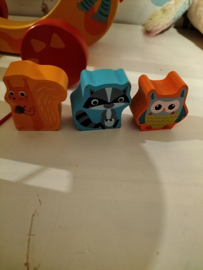 Jeu éducatif renard avec roue et corde 3 petits animaux à empiècer à l'intérieur