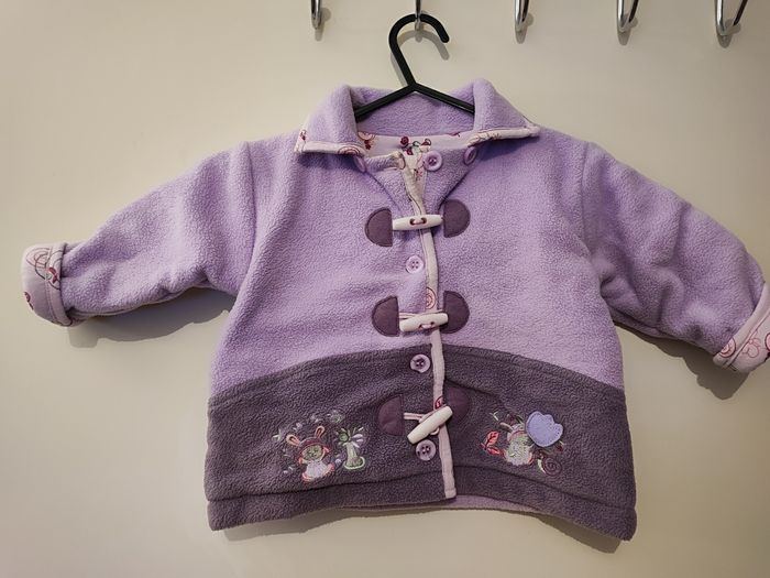 Superbe veste bébé fille Intérieur et bord coloré Épais Taille 3 mois Idéal mi saison Coloris parme Pas de capuche