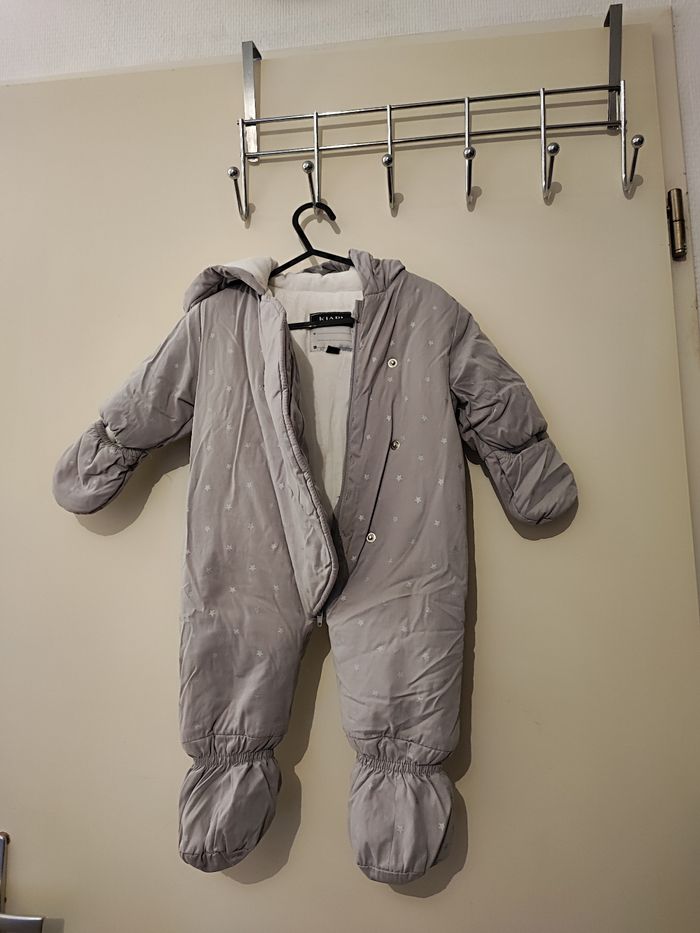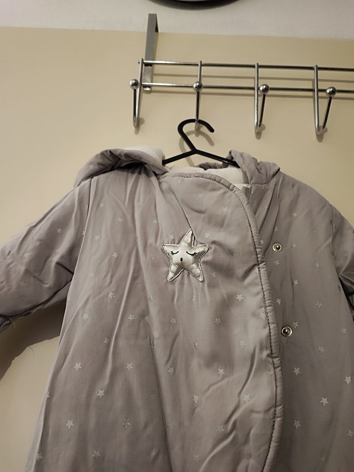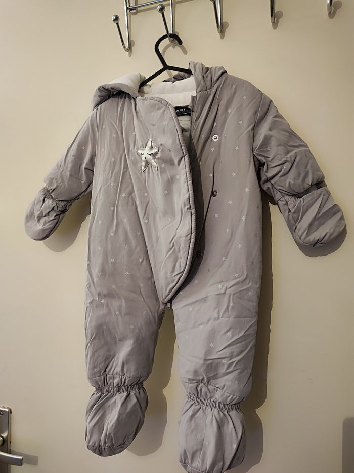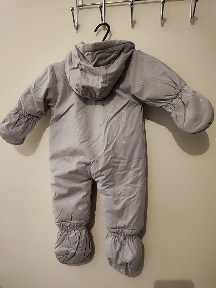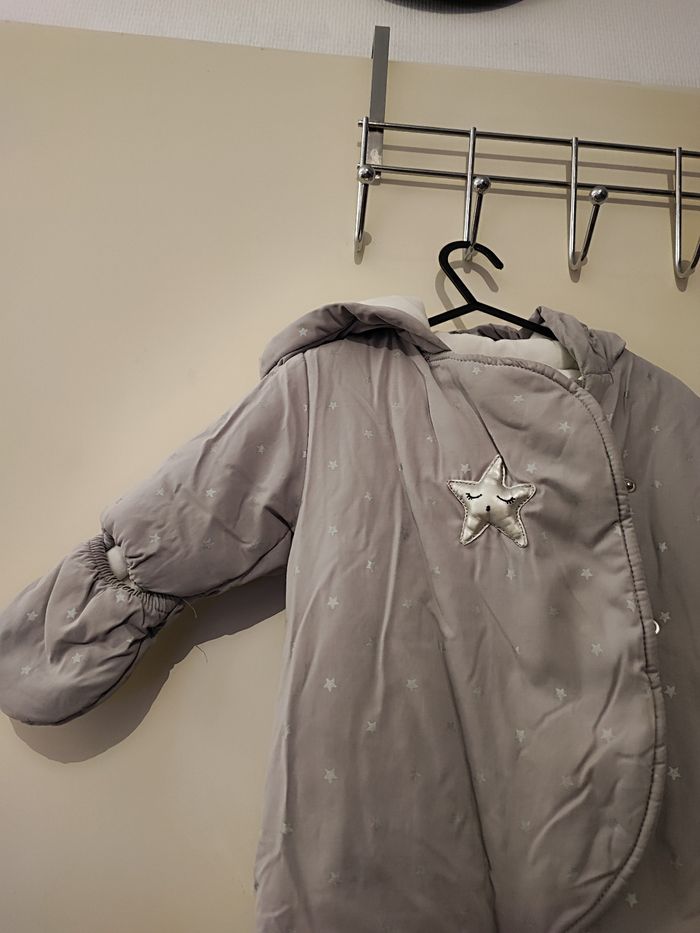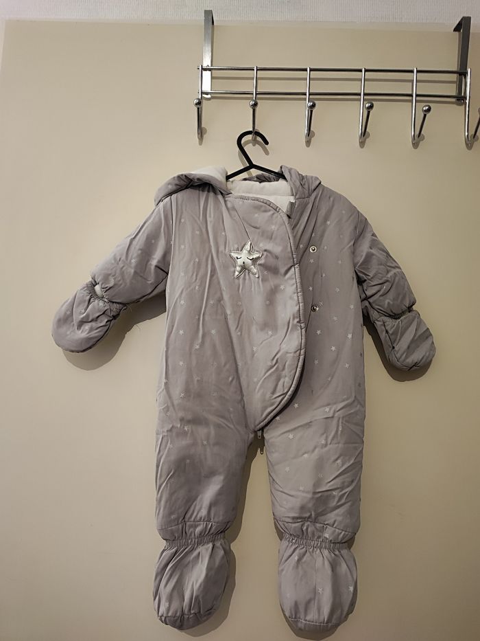 Magnifique combinaison bébé fille Matelassé fourré Taille 3 mois Coloris gris imprimé étoile argenté Très chaud pour l'hiver Pieds et mains protégées