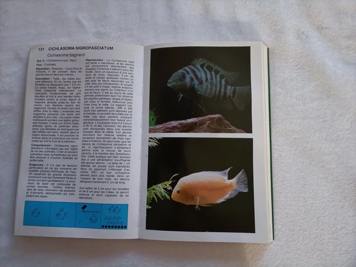 Je vends un livre c est un guide illustré Pour bien choisir Les poissons j' ai mis photos ,il y a que la toute première page qui a du bleu voir photo Sinon les autres pages dû livres ne sont pas abîmer mais n hésiter pas pour d autres renseignements je suis à votre écoute. Cordialement