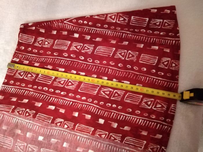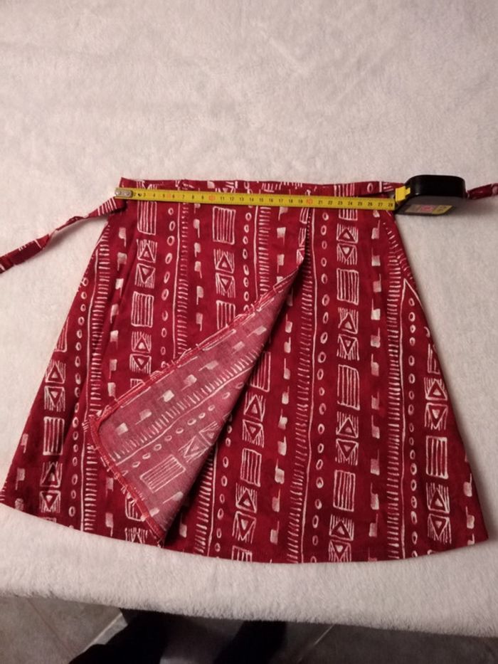 Jupe portefeuille rouge bordeaux et blanc voir les mensurations sur les photos. N hésitez pas pour d autre renseignement. Cordialement