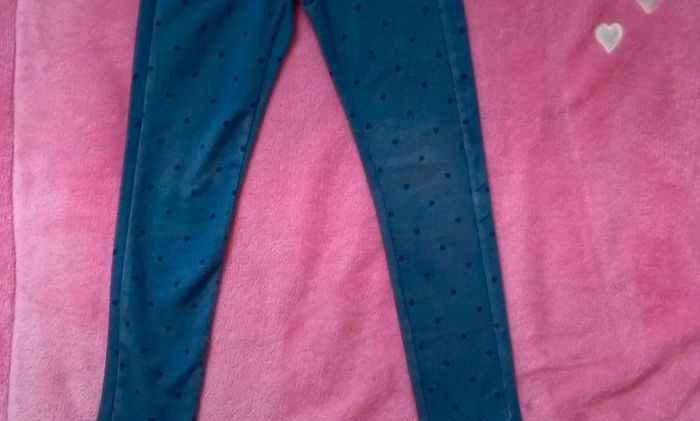 Pantalon Okaïdi taille 4 ans en bon état couleur bleu motif cœur ( légèrement délavé au niveau des genoux mais ne se remarque pas une fois portée ?