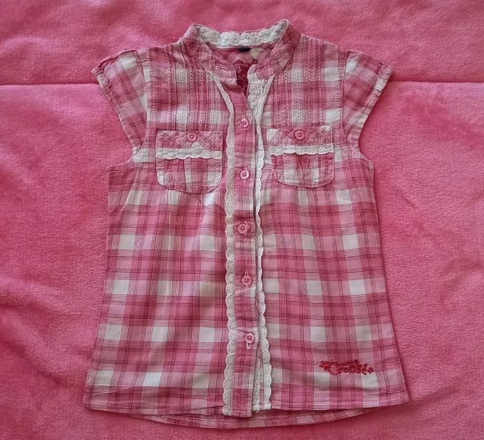 Ensemble Creeks taille 4 ans en bon état composé d'une chemise couleur rose Creeks ( une toute petite tache sur le devant voir dernière photo) et d'un legging Orchestra couleur noir