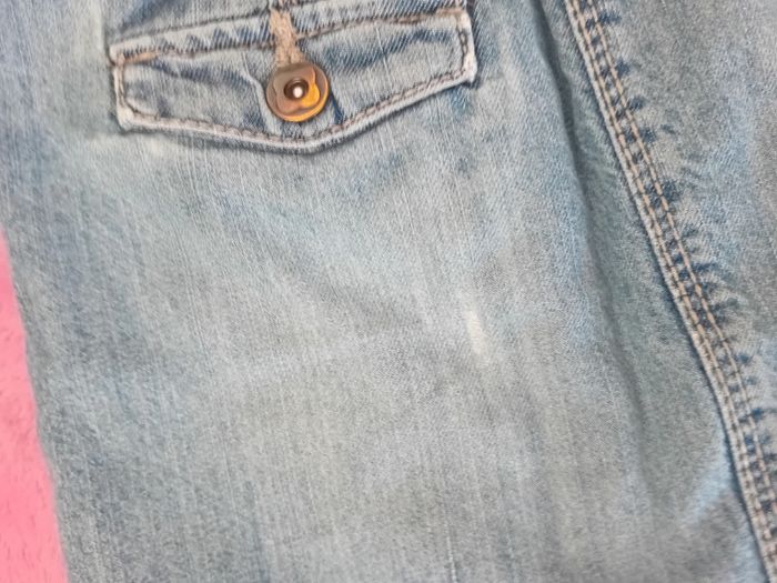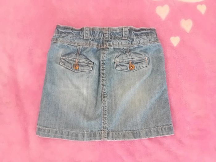 Jupe Okaïdi taille 5 ans en très bon état en jeans couleur bleu clair ( petit acro sur le derrière et petite tache sur le devant voir 4 ème et 5 ème photo) se voit légèrement