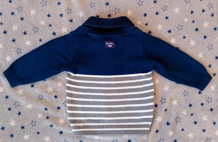 Gilet Tape à l'Oeil taille 6 mois en très bon état comme neuf couleur bleu marine et gris