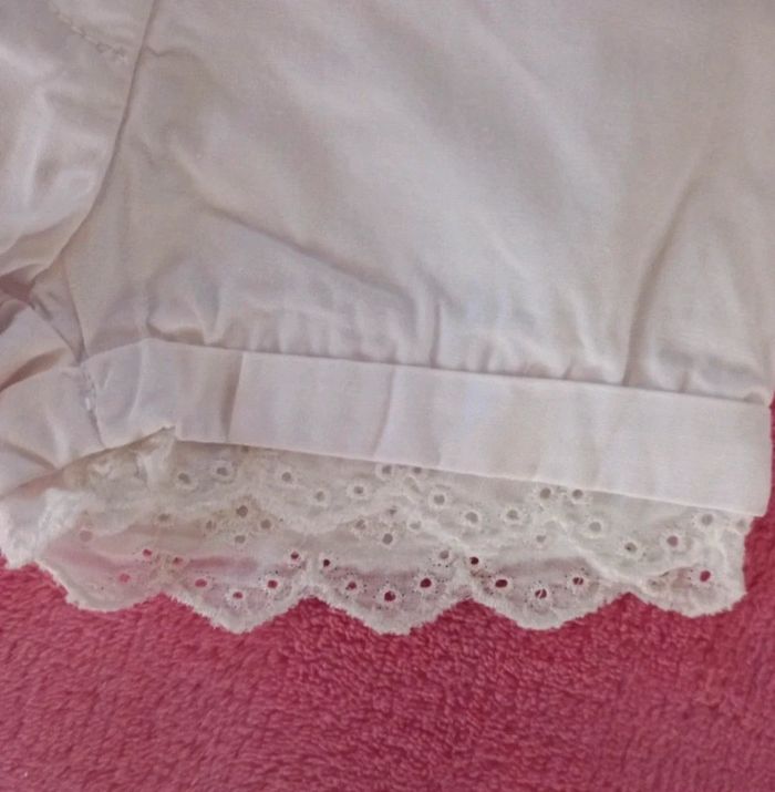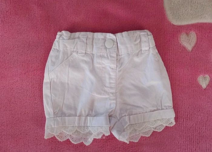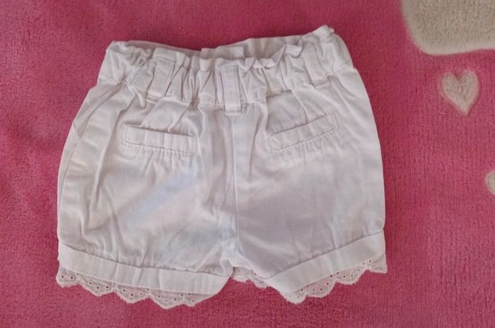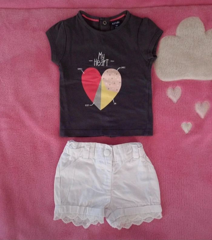 Ensemble Kiabi taille 3 mois en très bon état composé d'un t-shirt couleur gris à motif et d'un short avec dentelle couleur blanc
