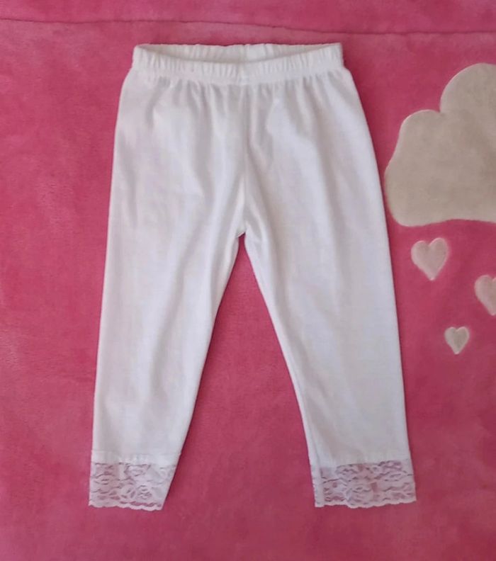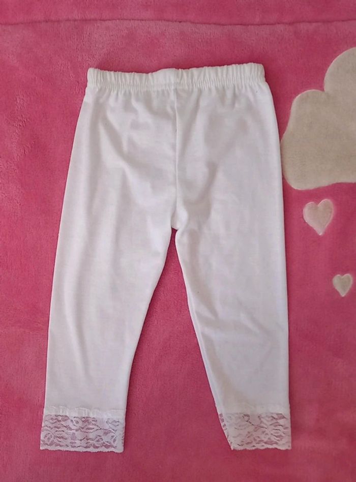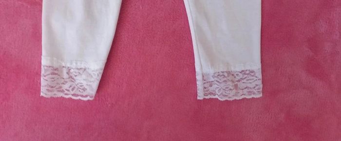 Ensemble Okaïdi taille 4 ans en très bon état composé d'un t-shirt Okaïdi bleu clair et d'un legging sans marque couleur blanc à dentelle en état neuf jamais porté