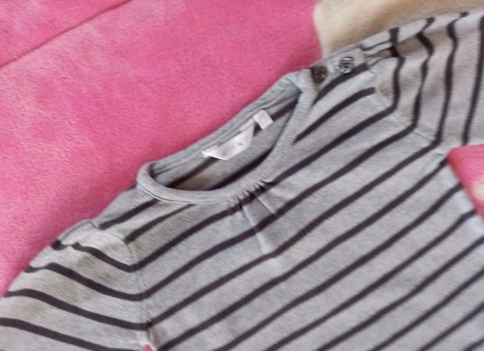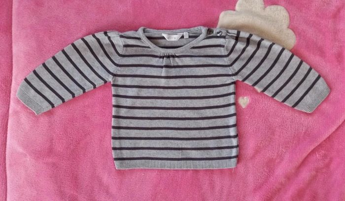 Pull Kiabi taille 18 mois en très bon état couleur gris et rayures noir