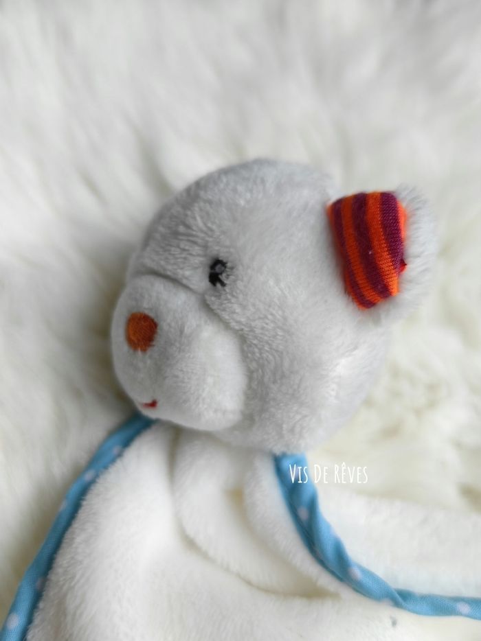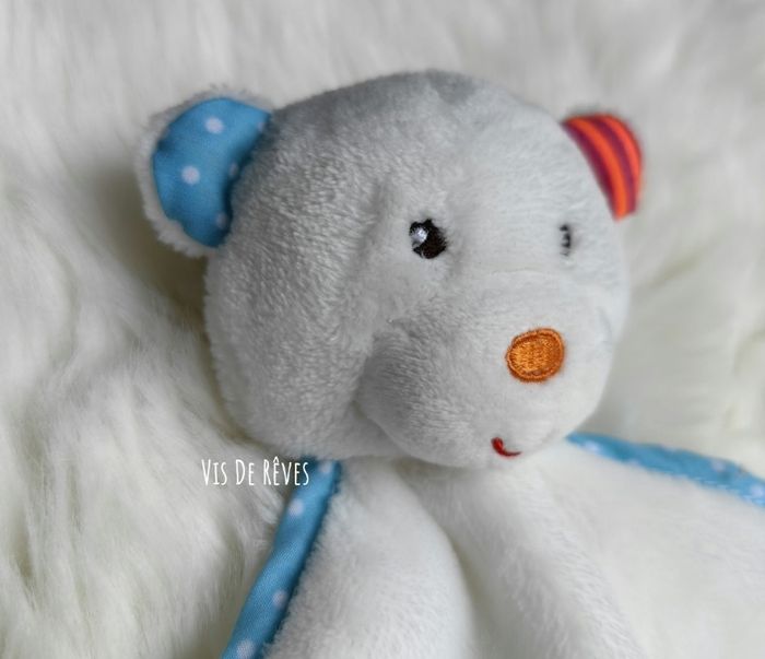 Doudou Ours Blanc Contour bleu à points blancs. Nez brodé orange. Oreilles bleu et orange rayé violet. Grelot Marque : Jurong Kangning Action Zeeman État : comme neuf 2 disponibles.-10% sur le lot de 2 (me contacter pour créer l'annonce). Vous achetez le doudou que vous voyez. Entièrement vérifié. Une recherche particulière ? Tout n'est pas en ligne, n'hésitez pas à me contacter 😊 Ref : A5 #VDR_OURS #VDR_ACTION #VDR_ZEEMAN