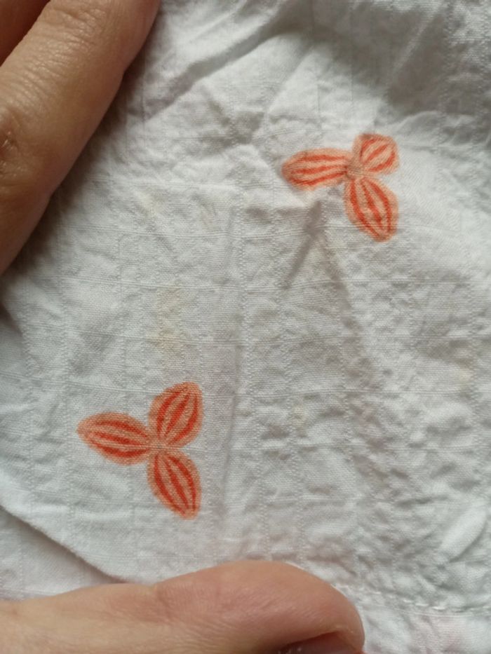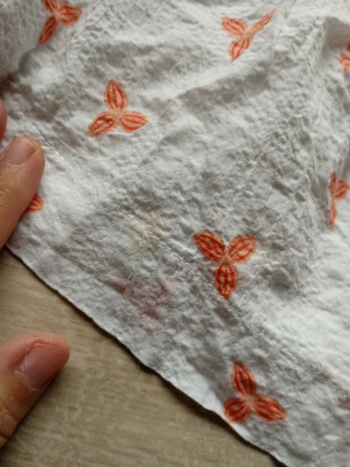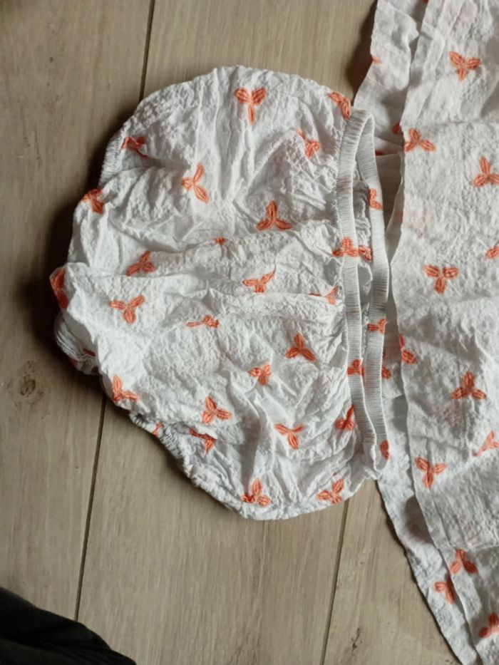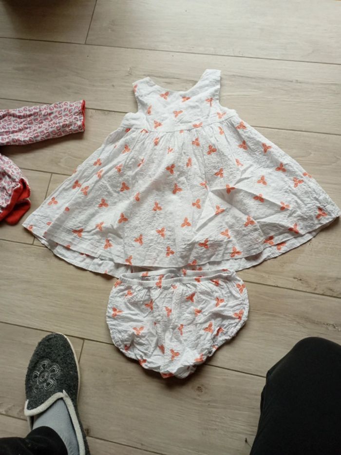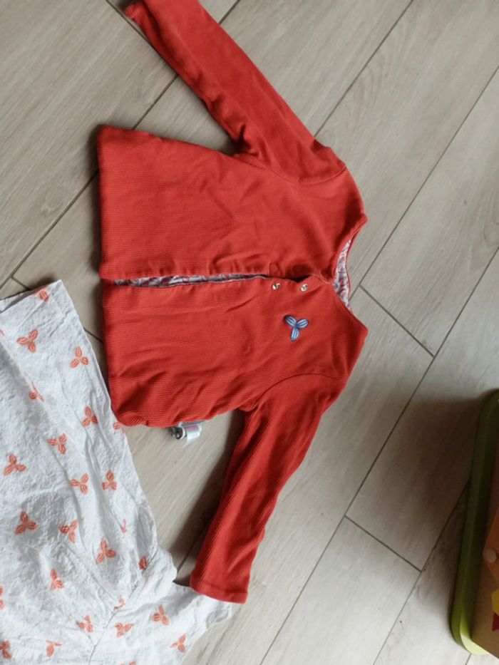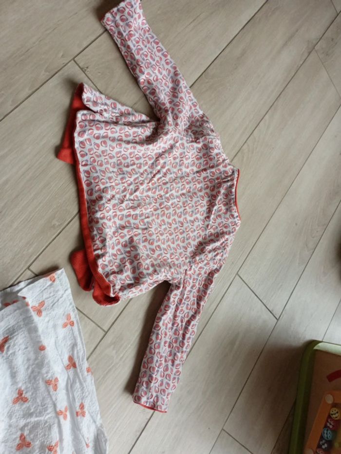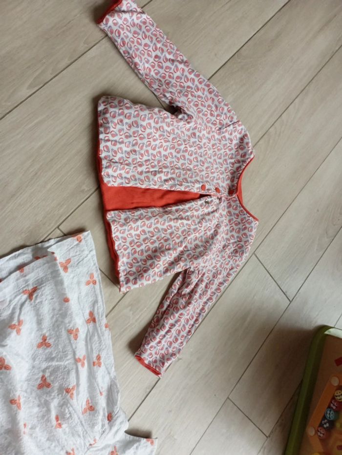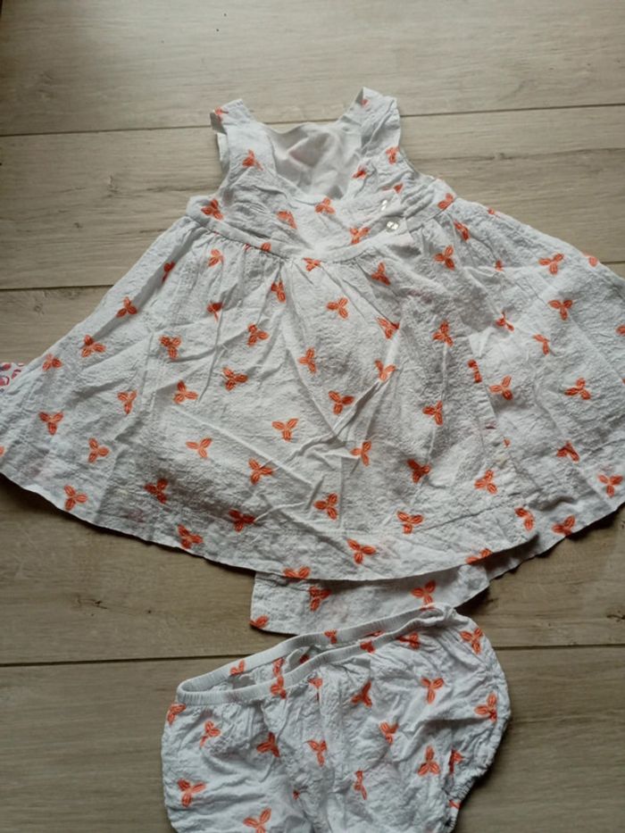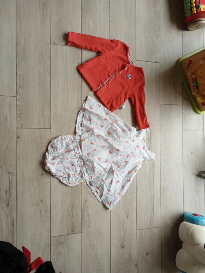 Quelques tâches jaune sur la robe et la culotte dû au faire à repasser. Le gilet est réversible et en très bon état