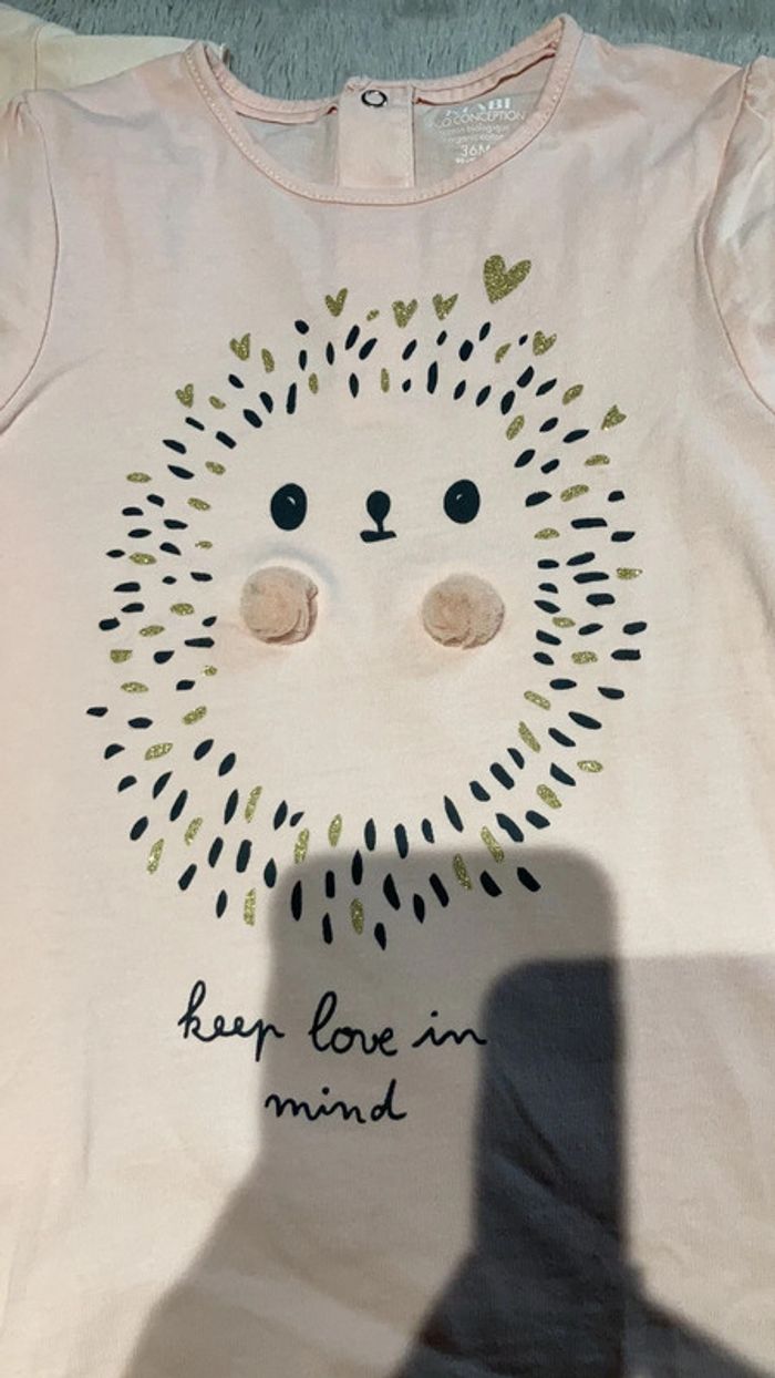Lots de deux T-shirts de filles, de couleur rose en bon état en taille 36 mois