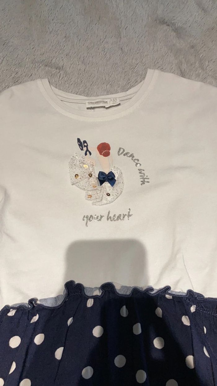 Robe de couleur bleu marine et blanc (le haut de la robe est devenu un peu gris) en taille quatre