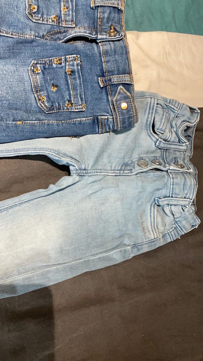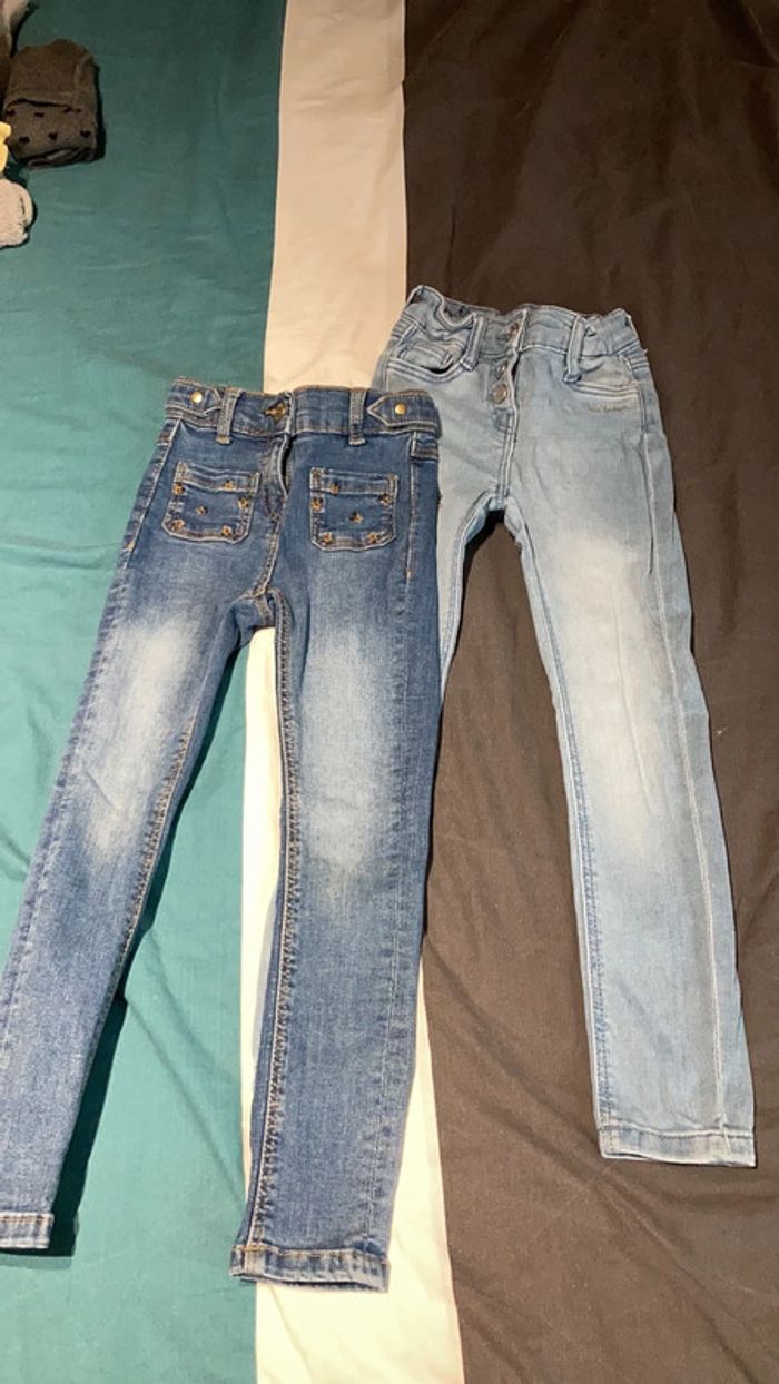 2 jeans super skinny en taille 5ans. Plutôt en bon état. Le plus clair est un peu plus usé.