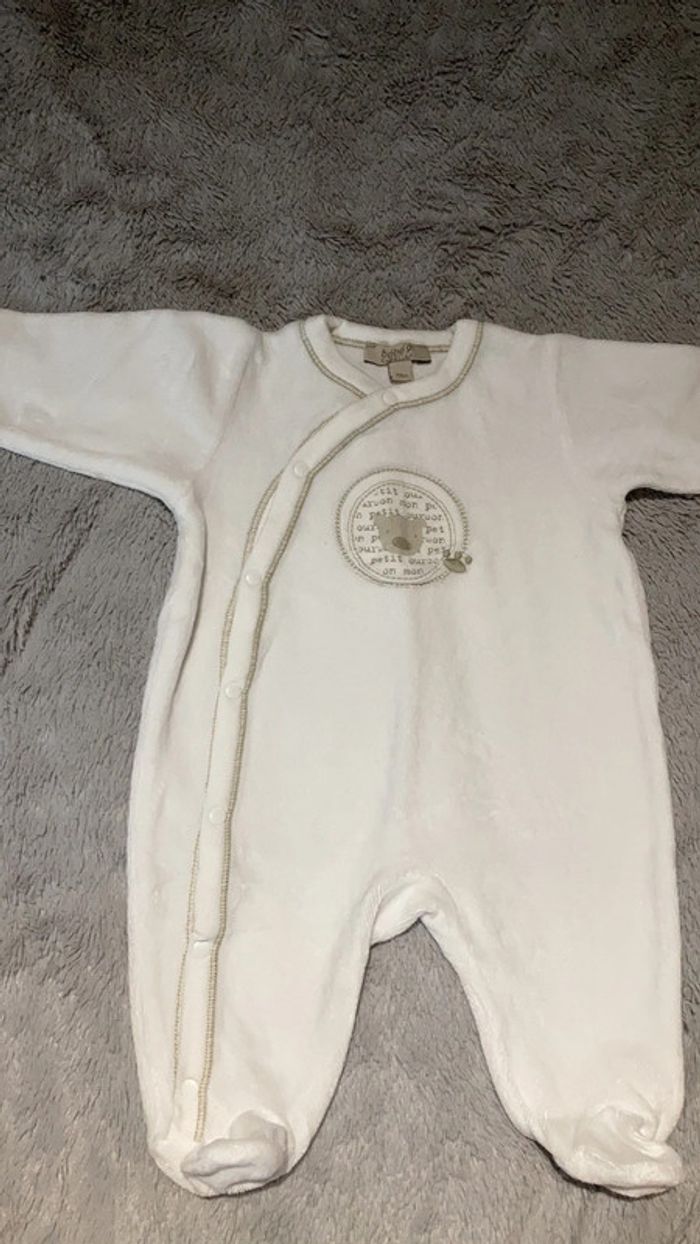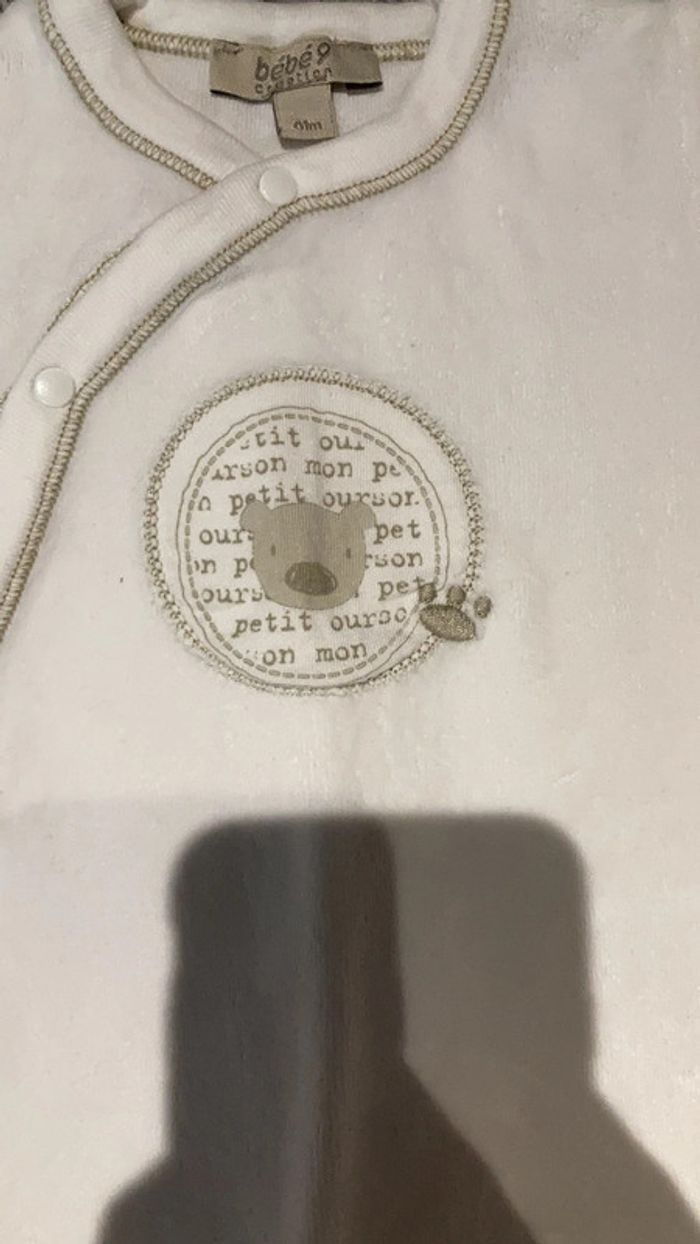 Pyjama, velours blanc, avec motifs ourson sur le mieux. En très bon état acheté chez bébé 9. Mixte