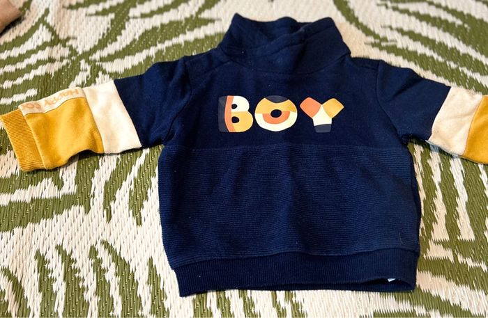 L’ensemble comprend: -2 sweat col montant qui protège bien le cou -1 pantalon Le tout en très bon état, taille: 74cm