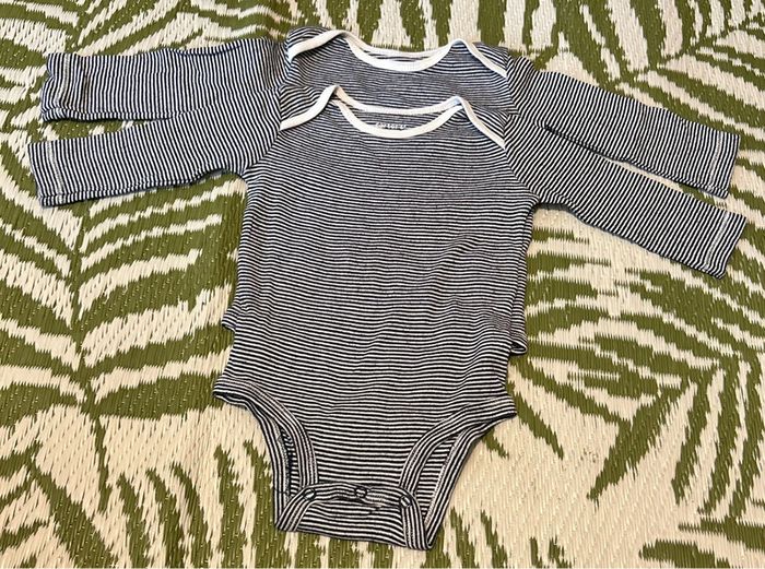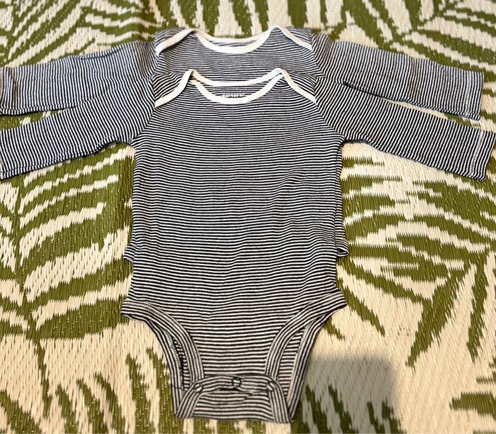 2 bodies rayés Carter’s en très bon état 1 taille 6m et 1 taille 9m