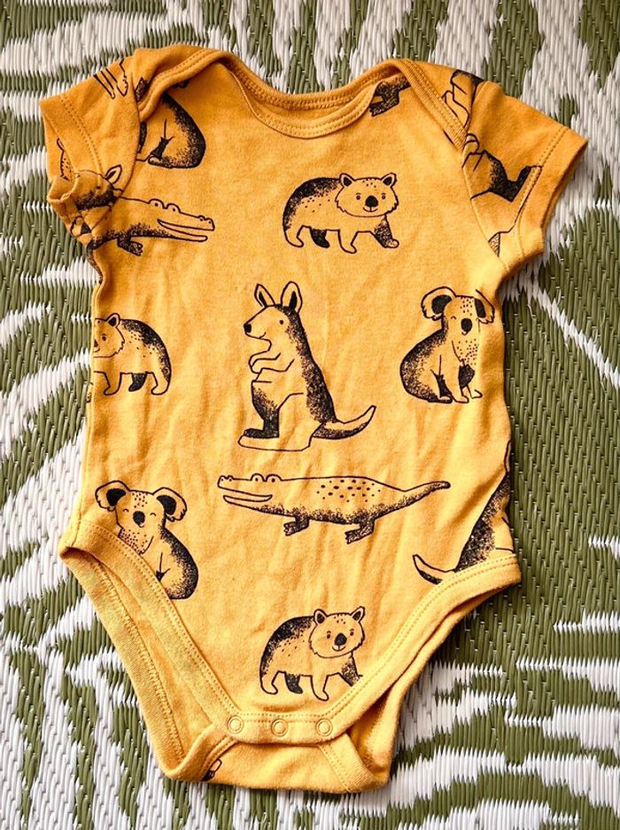 Lot de 2 bodies de tailles différentes: Le body jaune 68cm Le body vert 74cm Tous 2 en bon état et de la marque C&A