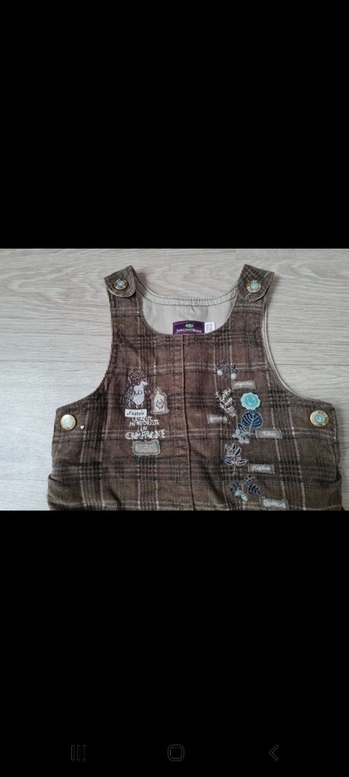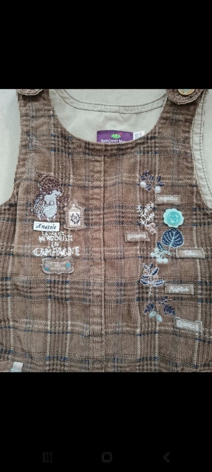 Salopette chaude Sergent Major taille 1 mois. Marron/kaki avec rayures légères, broderies sur le devant, très mignonne. Épaisse, doublée polaire, pressions entre-jambes et bretelles. Comme neuve (vu la taille portée 1 ou 2 fois) Tous mes articles sont lavés avant la vente.