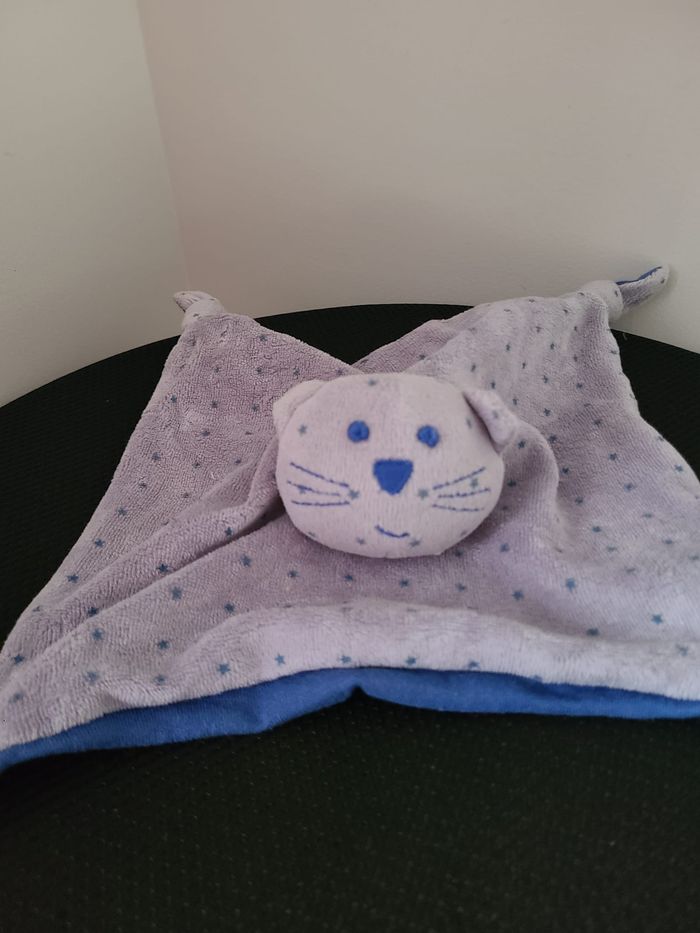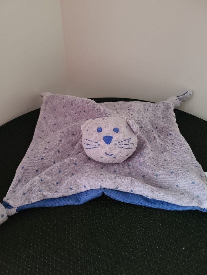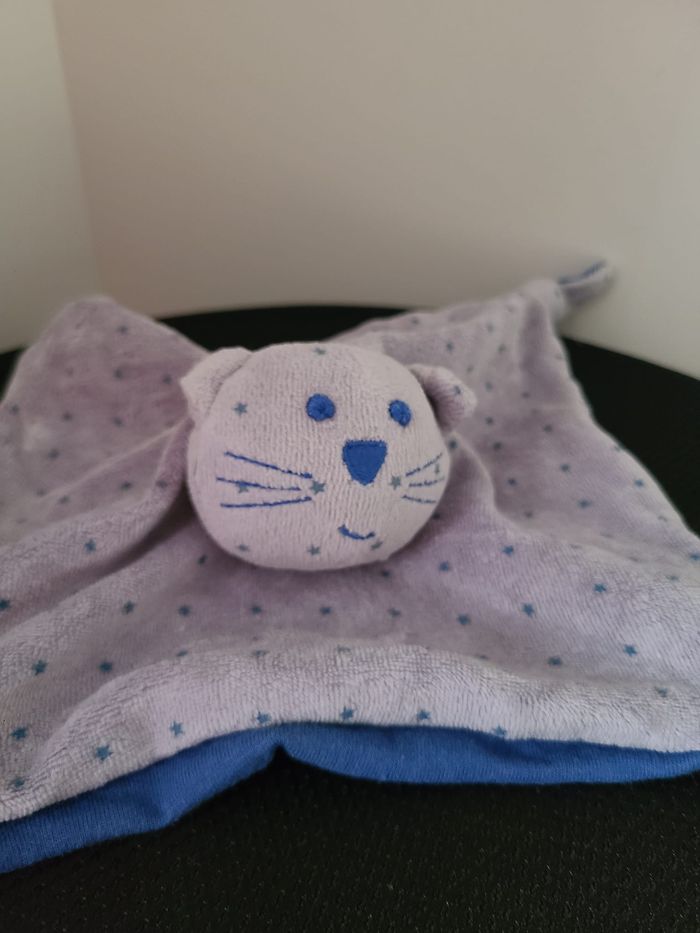 DOUDOU PLAT CHAT GRIS BLEU ÉTOILES BOUT'CHOU BOUTCHOU 79