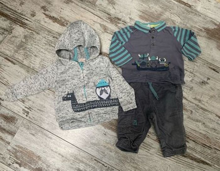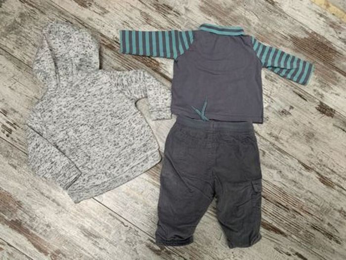 T-shirt manches longues Pantalon doublé Pull zippé Gris et bleu Taille 9 mois Porté quelques fois