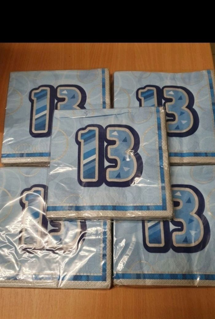 Serviettes papier anniversaire 13 ans 4€ les 5 paquets de 16 Serviettes chacun