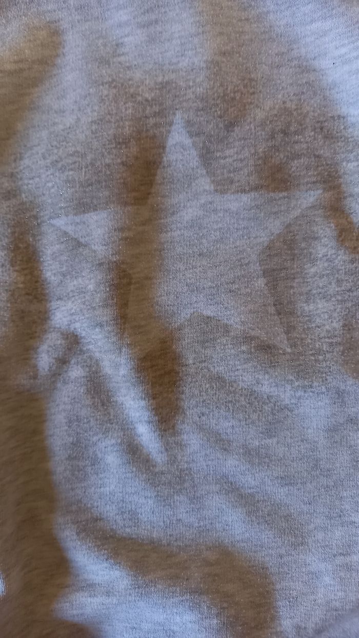 Sweat fille manches longues gris clair chiné avec motif étoile et empiècement beige légèrement brillant dos uni