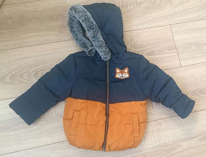 Doudoune fine 18 mois renard 🦊 Bleu marine et moutarde Petite tâches près d'une poche, très peu visible, je n'ai pas réussi à les faire paraître sur la photo.