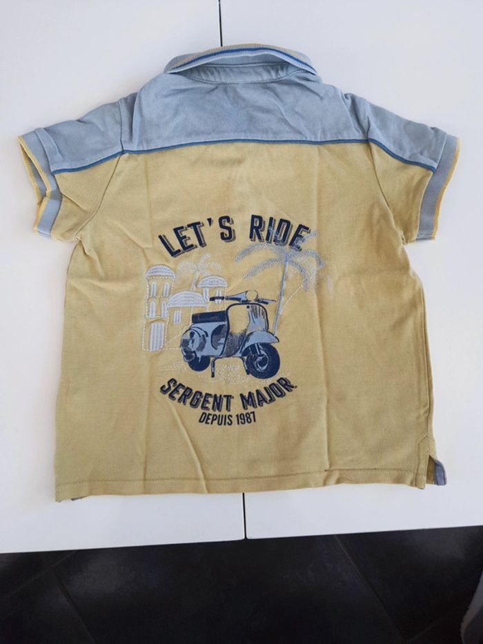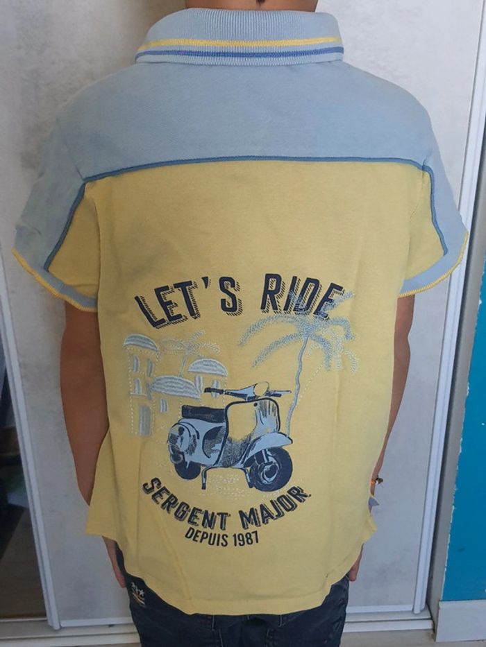 Polo manches courtes. Très bon état sauf une légère tâche devant qui se voit à peine. Taille 8ans. Marque Sergent major. Motif au dos 🏍