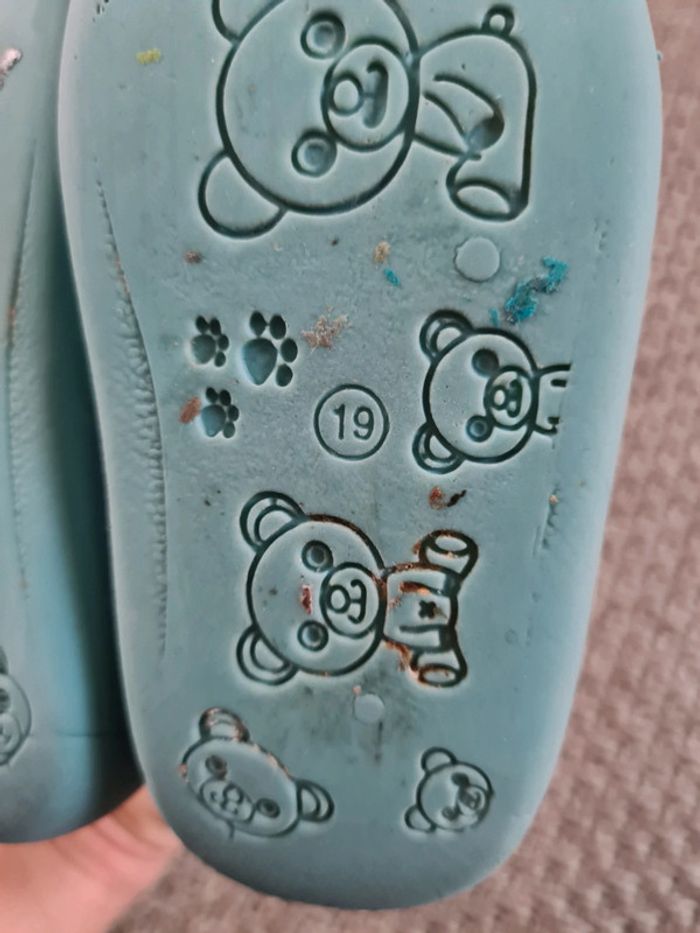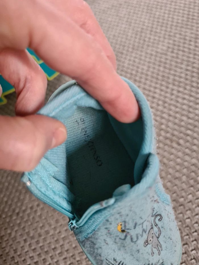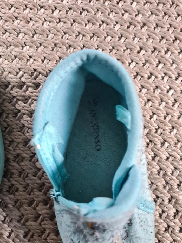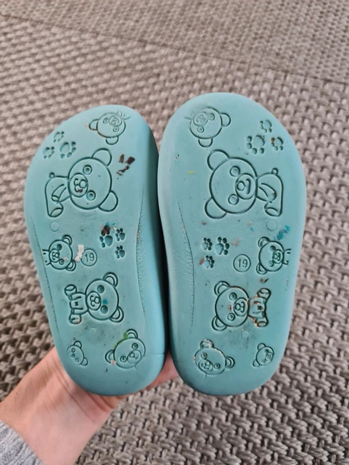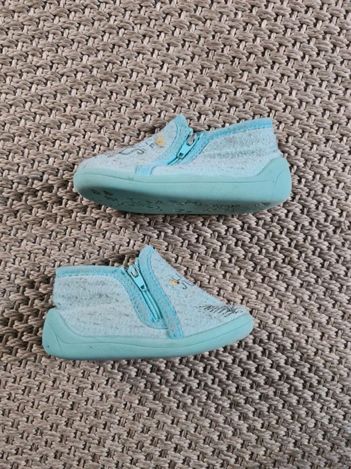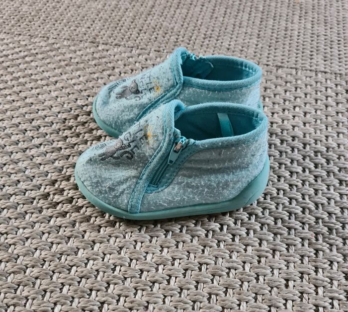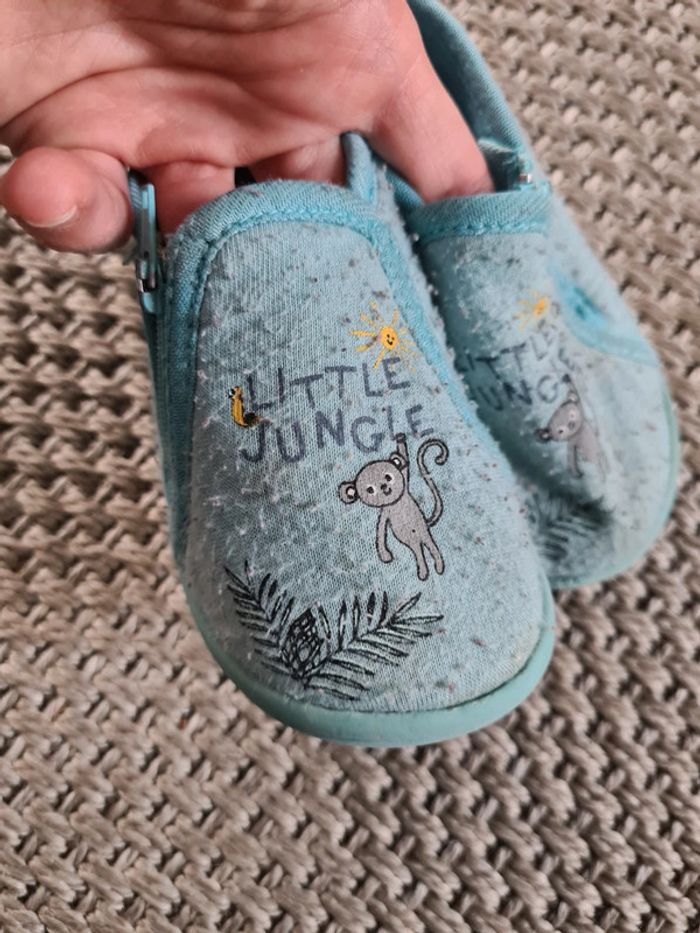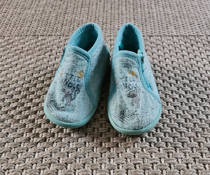 Chaussons jungle bleu turquoise mixte, ils ont été portés. Bouloches. Pointure 19 - marque in extenso. #choupihelochaussures #choupihelogarcon9mois #choupihelofille9mois