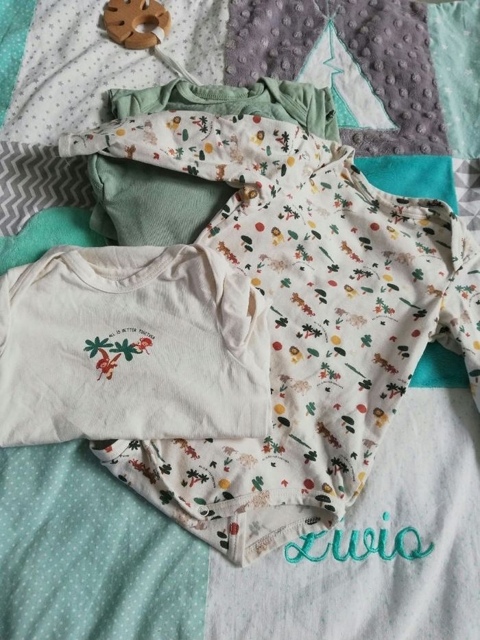 Très bon état achetés neufs peu servis attention taille plutôt 12 mois 4 bodies manches longues