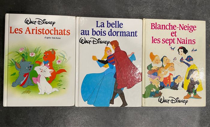 Bonjour, je vends trois livres Disney en bon état les Aristochats, la Belle au bois dormant et blanche Neige et les sept nains.