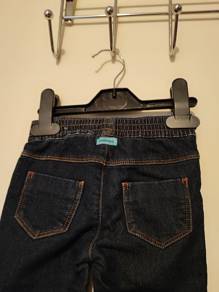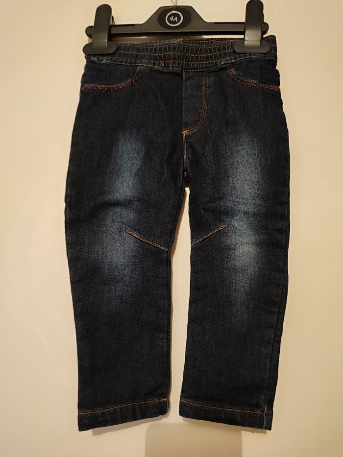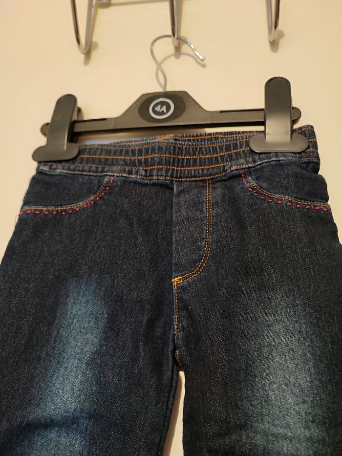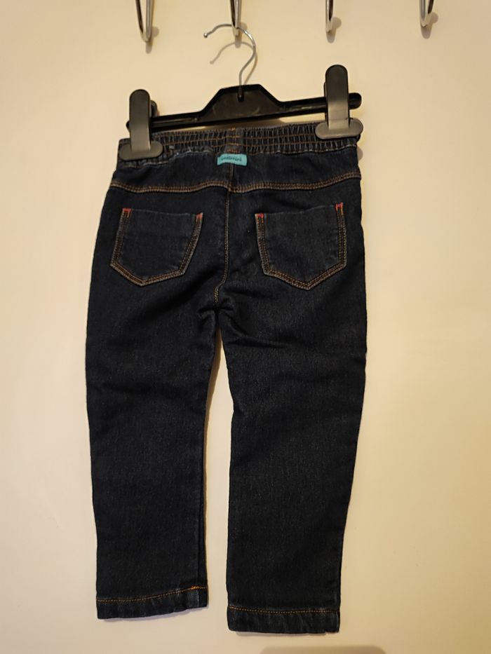 Superbe jean bébé fille Surpiqûres fils rouge Avant légèrement délavé Coloris bleu Taille 18 mois