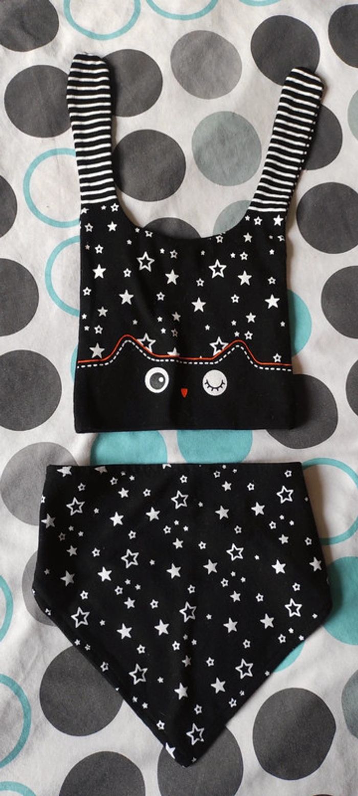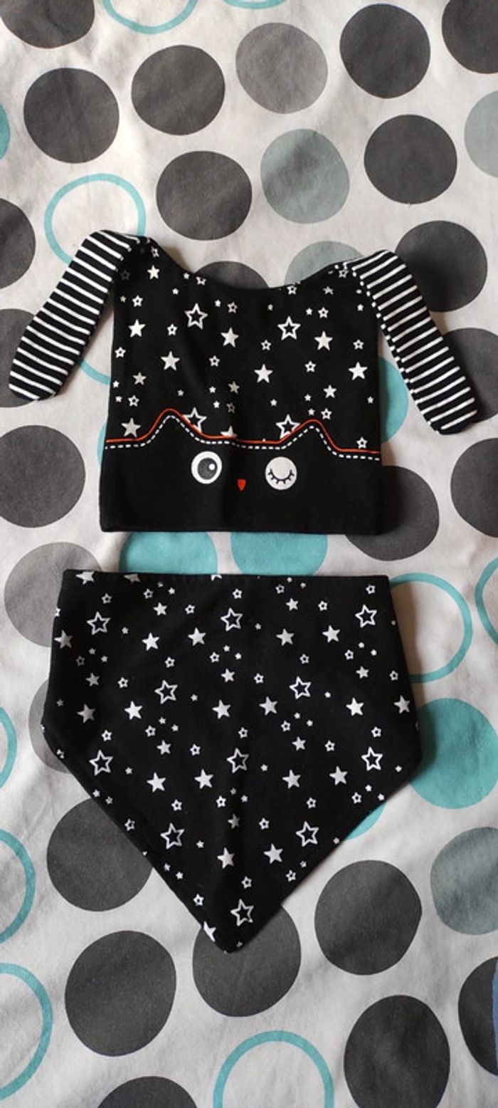 Bonnet +bavoir chouette étoiles original - photo numéro 1