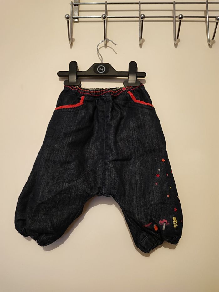 Superbe pantalon bébé fille En jean souple Style sarouel Taille élastique Coloris bleu brut Taille 9 mois
