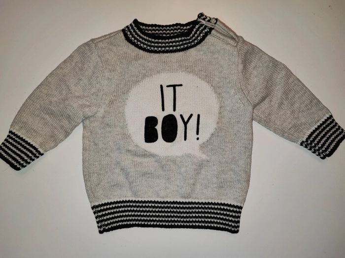 Pull gris et noir, taille 6 mois, marque Tex. #ledressdejena_6mois