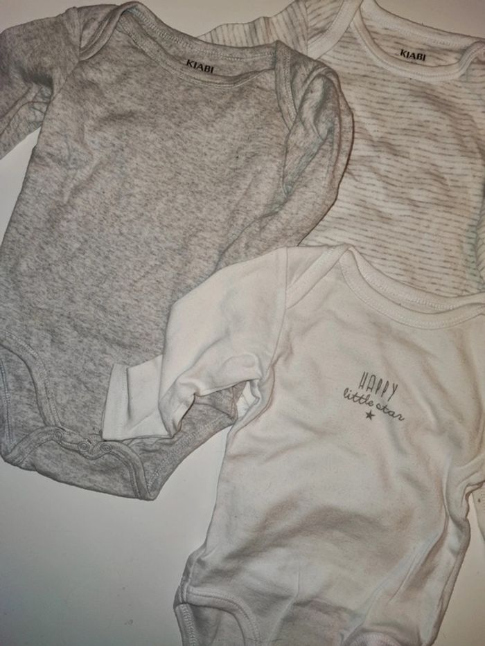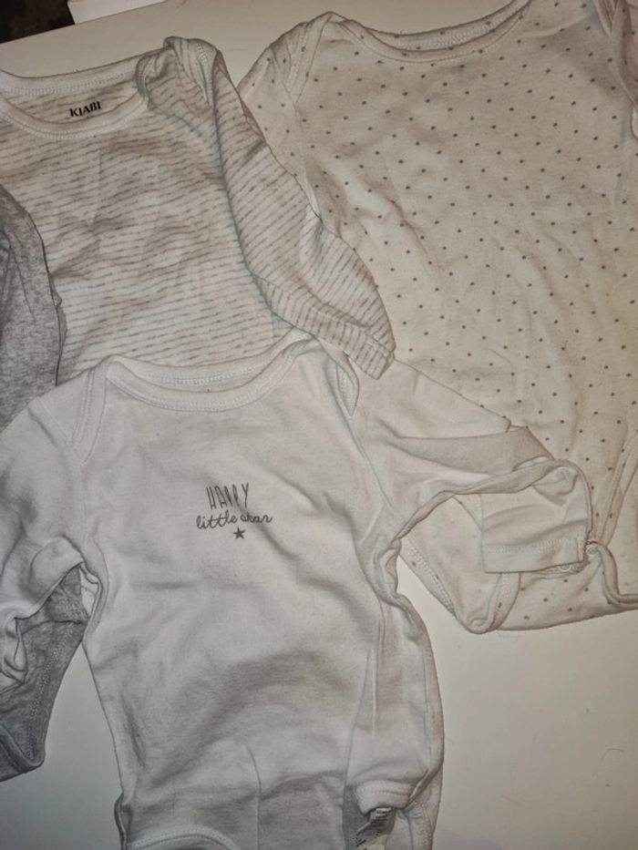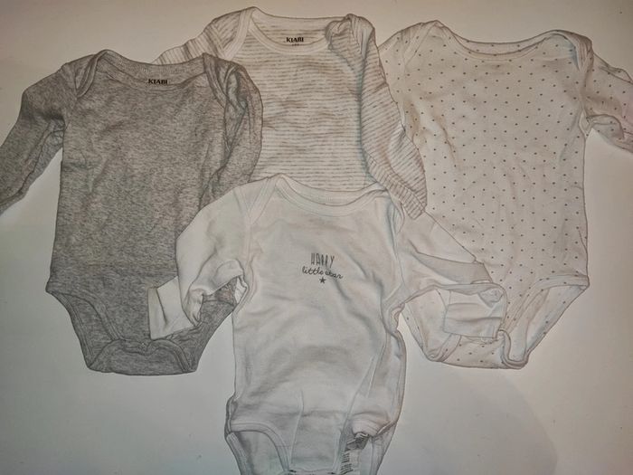 Lot de 4 bodies manches longues taille 6 mois marque Kiabi. Un body a le col légèrement tâché. #ledressdejena_6mois