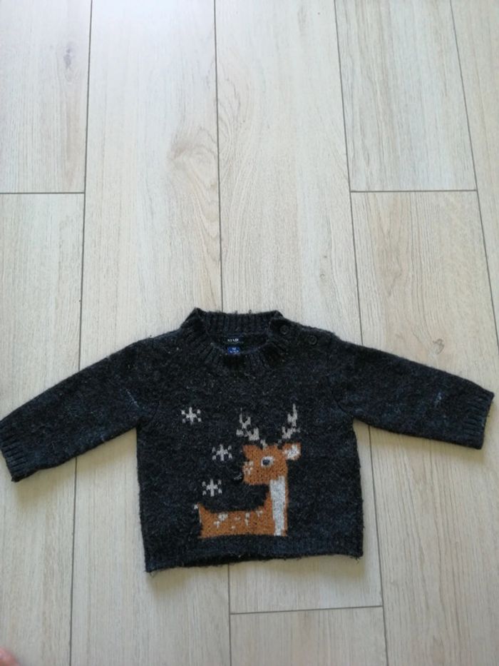Petit pull taille 1 mois de marque Kiabi gris chiné . Bon état présence de quelques bouloches.