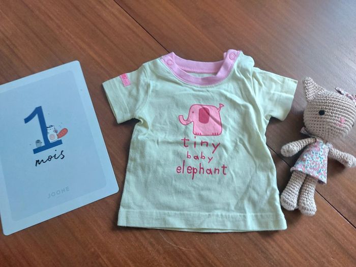 T-shirt manches courtes de marque H&M en taille 0-1 mois, vert et rose avec motif éléphant. Il est en très bon état. N'hésitez pas à faire des lots pour bénéficier de la réduction. Retrouvez mes autres articles en vente en cliquant sur lien qui vous intéresse ci-dessous : #ziprikaFille #ziprikaFilleNaissance #ziprikaFille1mois