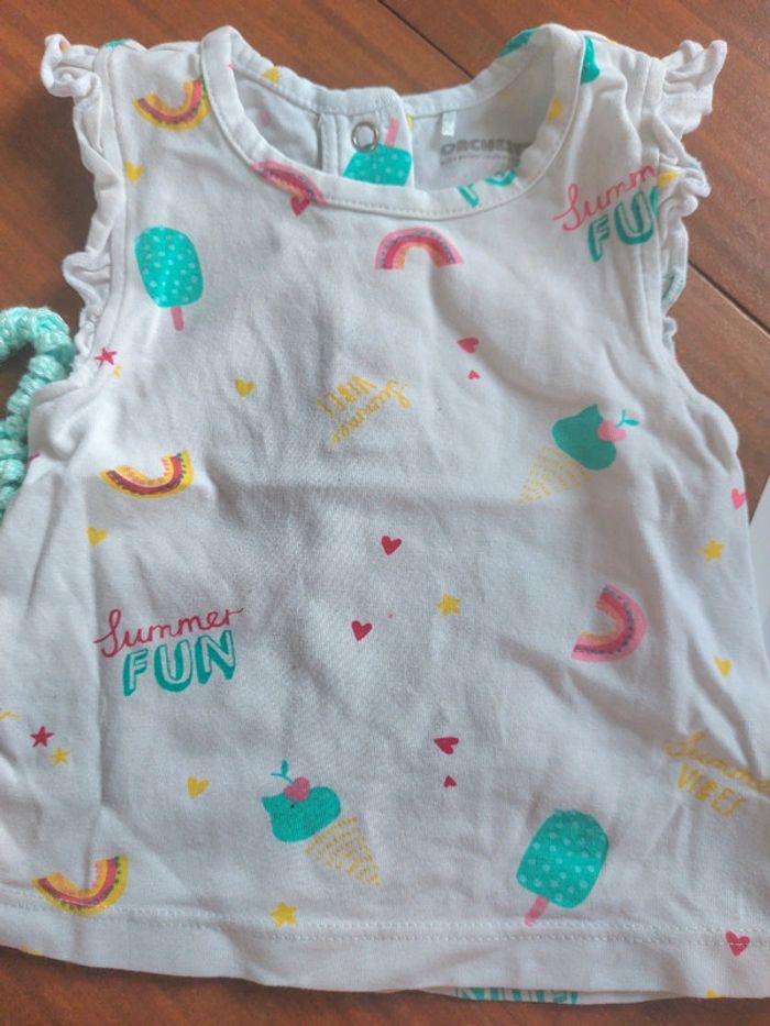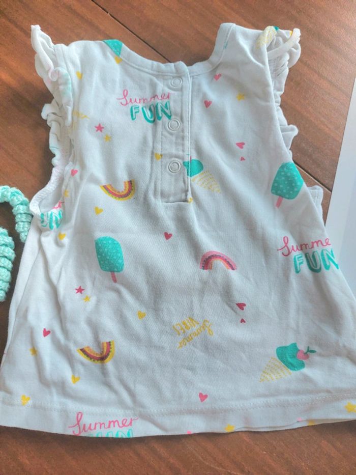 Petit T-shirt léger sans manches, de marque Orchestra, en taille 3 mois, avec motifs arc-en-ciel, glace, étoiles, cœur, été. Il est en très bon état. N'hésitez pas à faire des lots pour bénéficier de la réduction. Retrouvez mes autres articles en vente en cliquant sur lien qui vous intéresse ci-dessous : #ziprikaFille #ziprikaFille3mois