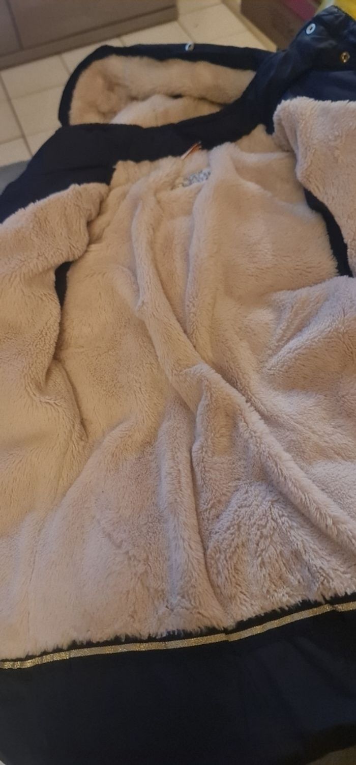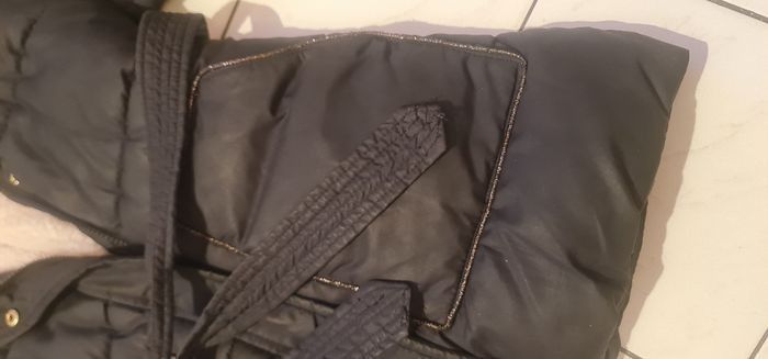 Beau manteau chaud avec un léger petit trou devant niveau en bas de la poche avec un petit point cela ne se verra plus.