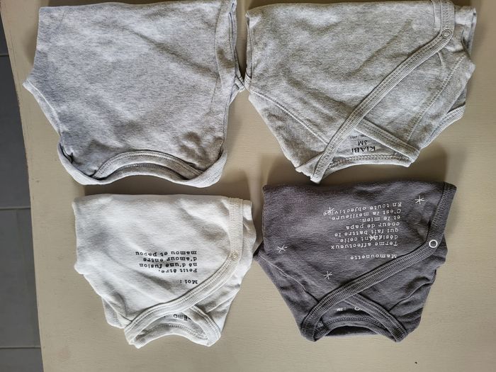 3 bodies manches longues et 1 bodie manche courte. Taille 3 mois
