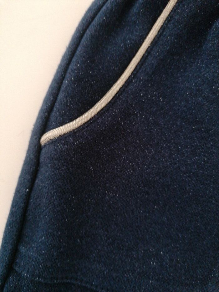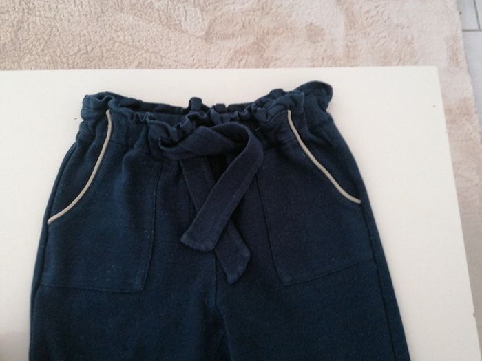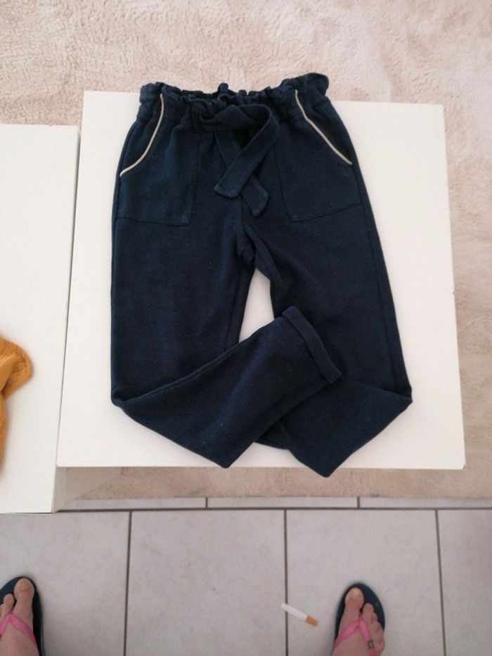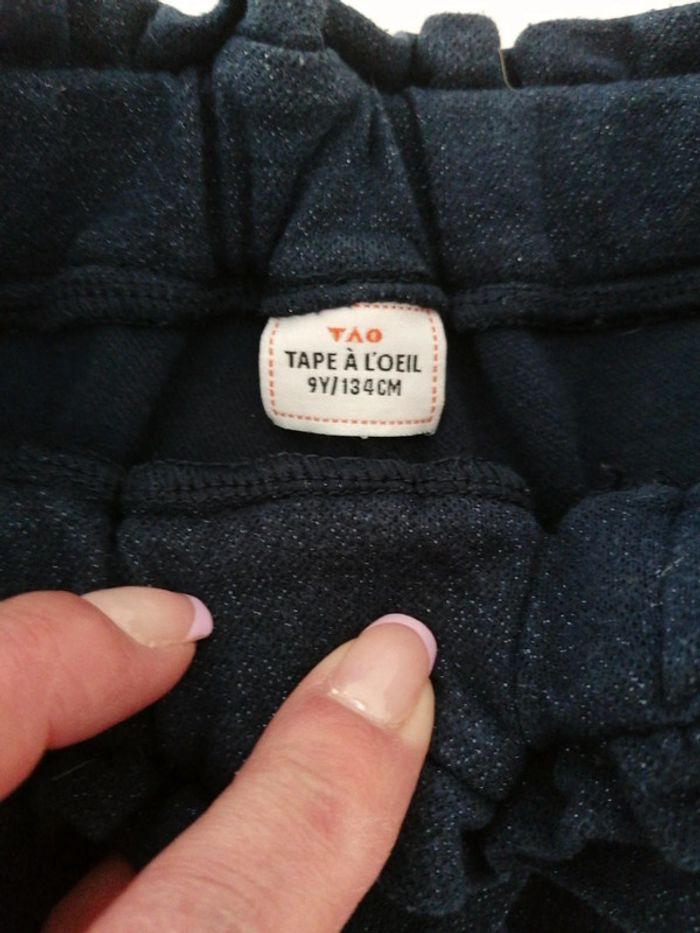 Pantalon tape à l'œil, taille 9 ans, 2 poches et ceinture, couleur bleu marine et légèrement pailleté, en tres bon état