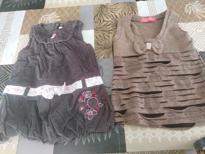 Robes avec noeud les 2 sont en 12 mois et manches courtes : une en velours