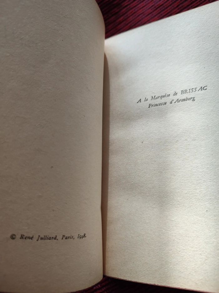 Ancienne édition René Julliard, Paris 1948 Vous pouvez voir l'état de la couverture du livre et une tâche d'eau sur le bord de certaines tâches.