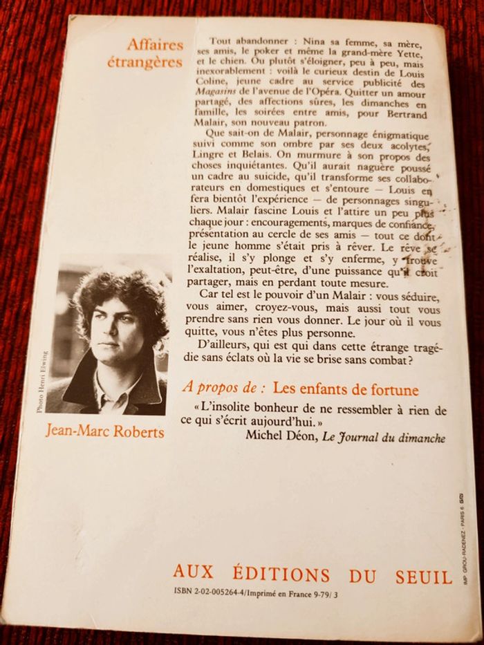 Roman "Affaires étrangères" . Jean-Marc Roberts. Ouvrage dédicacée
