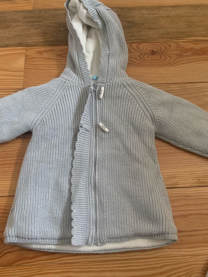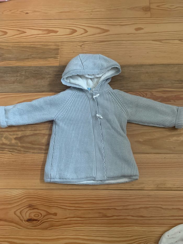 Manteau gris avec capuche, fermeture éclair et 2 boutons, Obaibi 23 mois