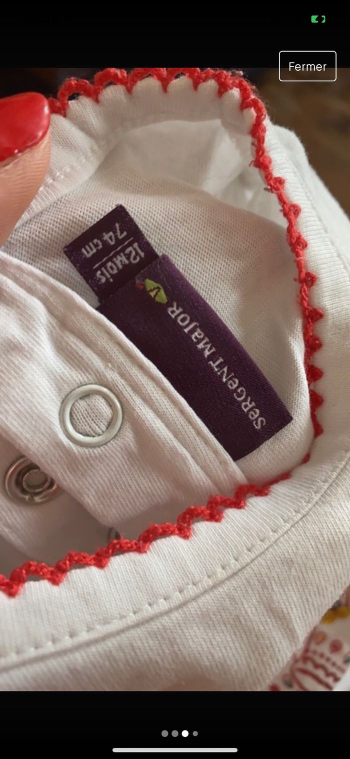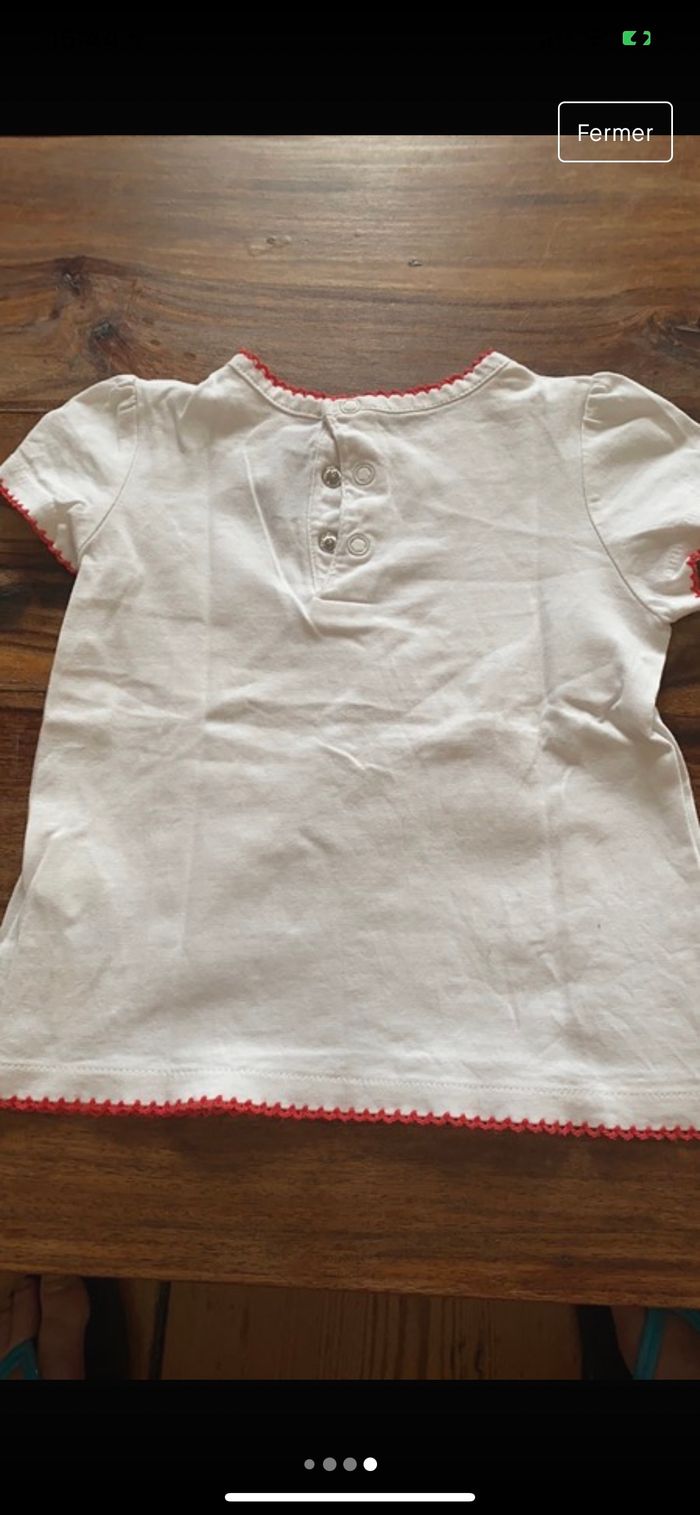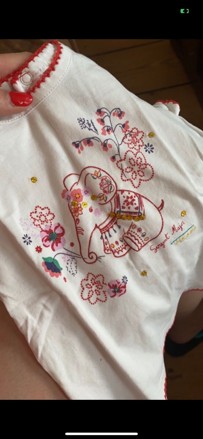 tee shirt blanc détail rouge pailleté et perle dorée taille 12 mois sergent major il est neuf !