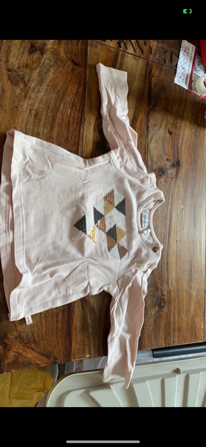 Tee shirt manche longue ikks 12 mois Rose pâle avec perle cousues dessus Portée 2 fois donc super état